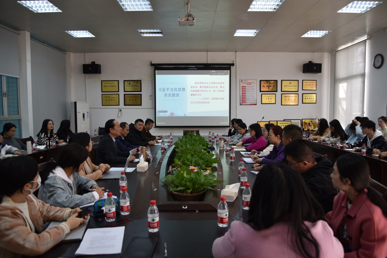 为深入贯彻习近平文化思想,推动层级集群结对共建院校思想政治理论课教师教学科研水平提升,11月17日上午,williamhill威廉希尔在校本部人文楼206会议室举行层级集群结对共建研讨会,中国人民大学教授、williamhill威廉希尔官网特聘教授王向明作专题辅导报告。研讨会由公司经理王前强教授主持。研讨会以线上线下相结合方式举行。广西中医药大学、右江民族医公司等共建高校及公司全体思政课教师、研究生参加活动。